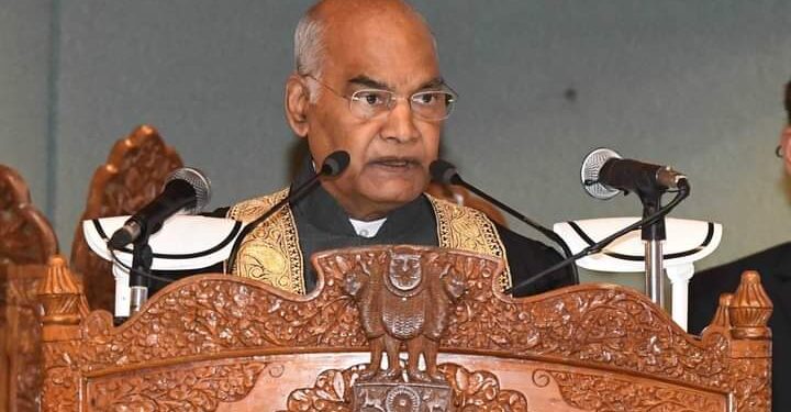 تشدد کھبی بھی ”کشمیریت “ کا حصہ نہیں رہا ہے لیکن بد قسمتی سے یہ معمول بن گیاکی بات کرتے ہوئے صدر ہند رام ناتھ کووند نے کہا کہ ”میں کشمیر کی نئی نسل سے تاکید کرتا ہوں کہ وہ اپنی عظیم وراثت سے سیکھیں، انہیں یہ معلوم ہونا چاہئے کہ کشمیر ہمیشہ باقی ملک کیلئے امید کی ایک کرن رہا ہے “۔ سی این آئی کے مطابق جموں کشمیر کے چار روزہ دورے کے دوان منگل کو ایس کے آئی سی سی سرینگر میں کشمیر یونیورسٹی کے 19 ویں کنونشن سے خطاب کرتے ہوئے صدر ہند رام ناتھ کودند نے کہا کہ کشمیر میں ہمیشہ سے مختلف مذہبوں کے لوگ مل جل کر رہے ہیں لیکن بدقسمتی سے اس غیر معمولی مذہبی رواداری کو ختم کرنے کی کوشش کی گئی اور تشدد جو کبھی کشمیریت کا حصہ نہیں رہا ہے، معمول بن گیا۔صدر کووند نے کہا کہ غیروں نے کشمیر پر مسلط ہونے کی کوشش کی جس کو ہم ایک عارضی وائرس ہی قرار دے سکتے ہیں جو جسم پر حملہ آور ہوتا ہے۔اس موقعہ پر انہوں نے طلبہ جنہوں ڈگریوں سے نواز ا گیا کو مبارک باد پیش کرتے ہوئے کہا کہ مجھے کہا گیا کہ آج قریب تین لاکھ طلبہ ڈگریاں حاصل کر رہے ہیں اور مجھے خوشی ہو رہی ہے کہ میں اتنی تعداد میں اسکالروں او ر ڈگری ہولڈروں کو دیکھ رہا ہوں ۔ انہوں نے کشمیر یونیورسٹی کی تعریفیں کرتے ہوئے کہا کہ یونیورسٹی نے ایک تاریخ رقم کر دی ہے جس کیلئے ان کی جنتی تعزیف کی جائے وہ کم ہے ۔ صدر جمہوریہ رام ناتھ کووند نے کہا کہ میں نے کشمیر کو جنت بروئے زمین دیکھنے کا خواب دیکھا ہے جس کے شرمندہ تعبیر ہونے کا انحصار خاص طور پر نوجوانوں اور خواتین پر ہے۔صدر جمہوریہ رام ناتھ کووند نے کشمیر کو ملک کے لئے امید کی ایک کرن قرار دیتے ہوئے یہاں کی نئی نسل کو اپنی عظیم وراثت سے سبق حاصل کرنے کی تاکید کی ہے۔ انہوںنے کہا کہ کشمیر کے نوجوان مختلف شعبوں میں بلندیوں کو چھو کر اپنا لوہا منوا رہے ہیں۔ان کا کہنا تھا کہ ‘کشمیر کے نوجوان مختلف شعبوں میں نئی نئی بلندی طے کر رہے ہیں، سول سروس سے لے اسپورٹس تک اپنا مقام بنا رہے ہیں۔ کشمیر کو شاعروں نے جنت بروئے زمین کہا ہے لیکن میں سمجھتا ہوں کہ کشمیر کی خوبصورتی کو الفاظ میں بیان نہیں کیا جا سکتا’۔انہوں نے کہا کہ کشمیر ہمیشہ سے تعلیم و تعلم کا مرکز رہا ہے اور ملک کے فلسفے کی کشمیر کا حوالہ دیے بغیر تاریخ تحریر کرنا نا ممکن ہے۔