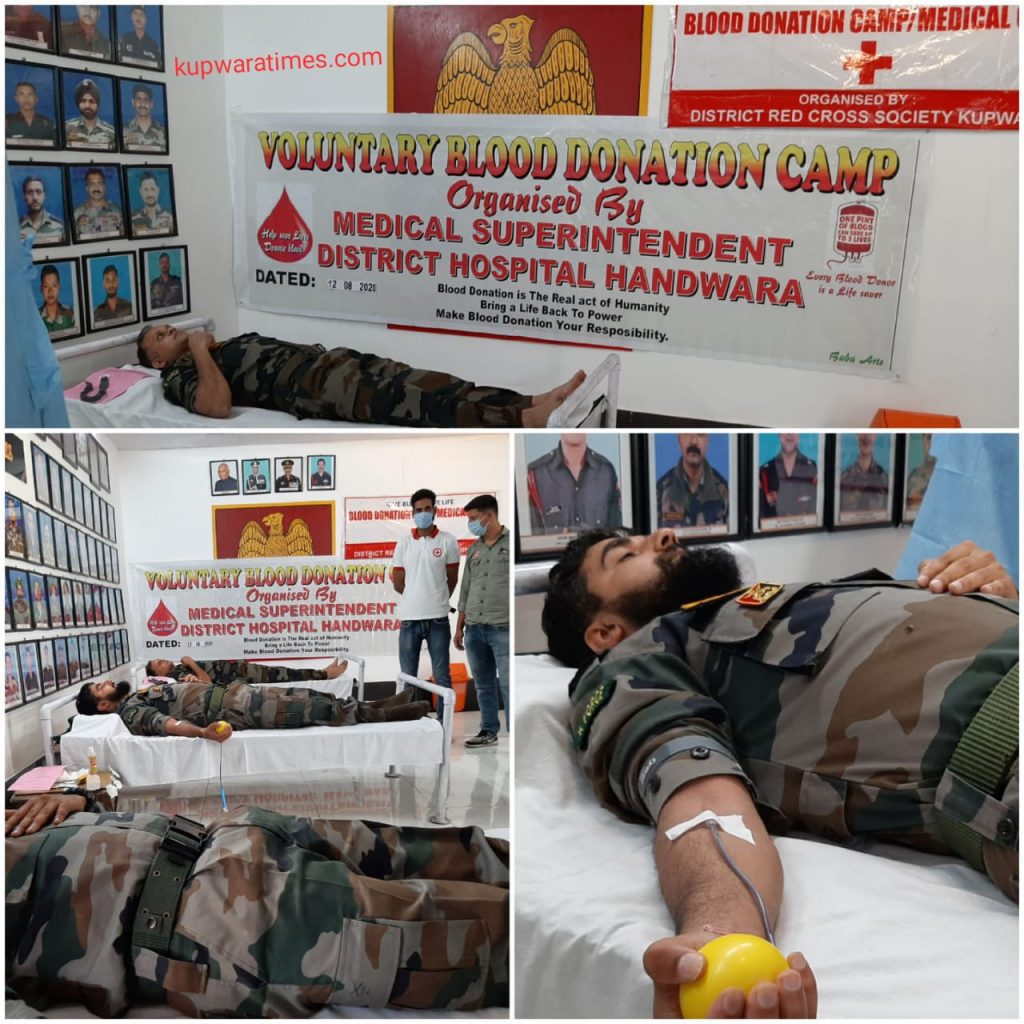 On the occasion of the 50 Army Jawans anniversary a blood donation camp was organized on 12/8/2020 by 21RR at bagthpora camp with coordination with district hospital handwara & Distt Red Cross society kupwara the Red Cross Society provided sanitizers and masks on the occasion.