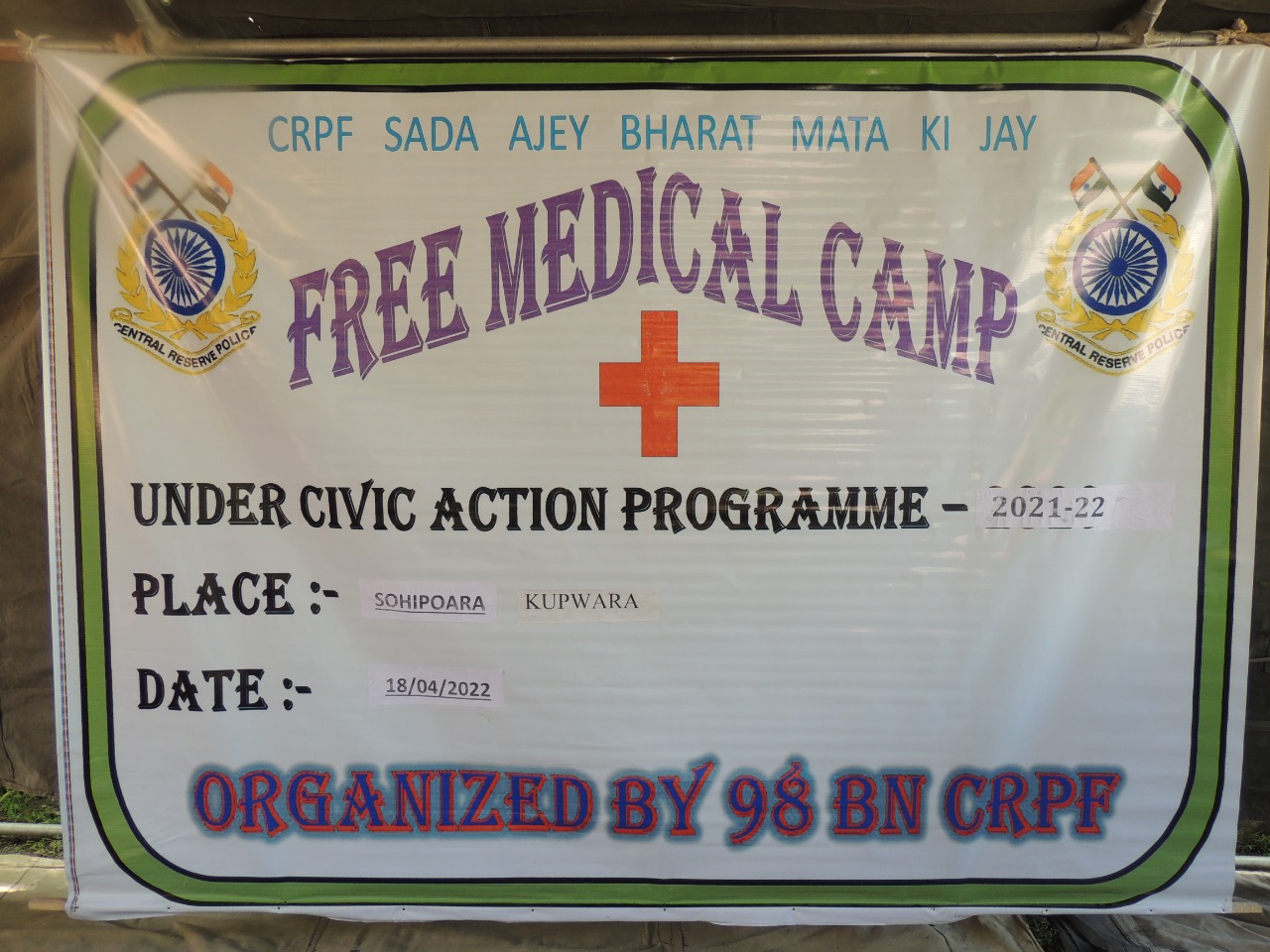 Kupwara, April 18, : Today (18/04/2022) as a part of the civic action programme, 98 Bn CRPF conducted