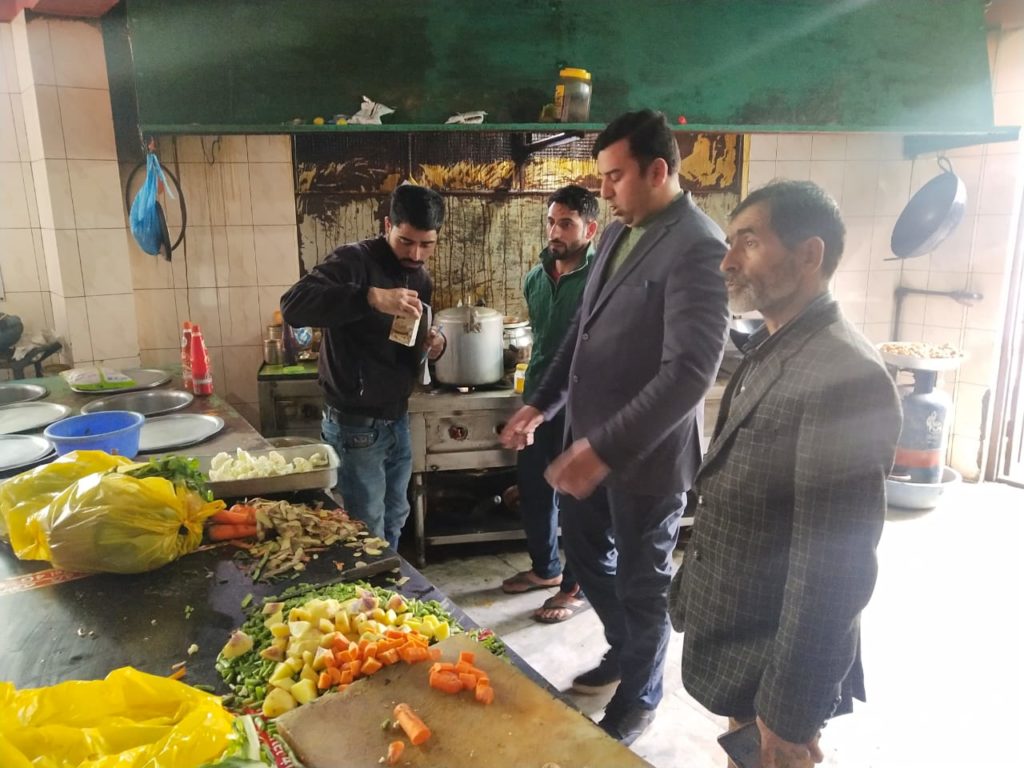 Kupwara :- Assistant Director FCS & CA Kupwara , Mudasir Ahmad conducted a surprise market checking align with Revenue Department and Police administration and imposed a fine of 45,000 for violating the food safety standards. Many main hotels of Kupwara town were raided and expired food item were seized .