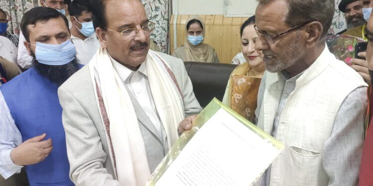 Kupwara Sep 10, Awami Ittihaad Party (AIP) delegation led by Senior Leader Nazir Ahmad War met MoS Defence and tourism this afternoon at Kupwara. Delegation stressed upon the early release of incarcerated AIP Supremo. Minister was acknowledged that Party was formed in the year 2012 to provide a political platform to the new aspirants of politics especially youth and to provide an alternative to traditional political parties. The party is aimed to be provided a political space at with the other political mainstream parties in the state. The delegation unanimously demand the overall development, employment opportunities for all sections of the society in the UT. AIP has been the pioneer in the UT to state outdoor campaigning for our candidates in panchayat, parliament and DDC elections and scored a good and considerable amount of votes percentage in the all three elections. The party will appreciate and support any move by the central government for betterment of the people. We demand a special job package for our unemployed youth be announced very soon as the region has faced lot economic problems due to the unfortunate circumstances. Delegation also demanded a specialised health facilities at district level and four lane road connectivity to all district headquarters. Promotion of tourism in unexplored destinations can boost the economy of the region delegation stated. Party demand the equal political opportunities as a political party which is for uphold of democratic institutions. Delegation presented a memorandum to the minister.