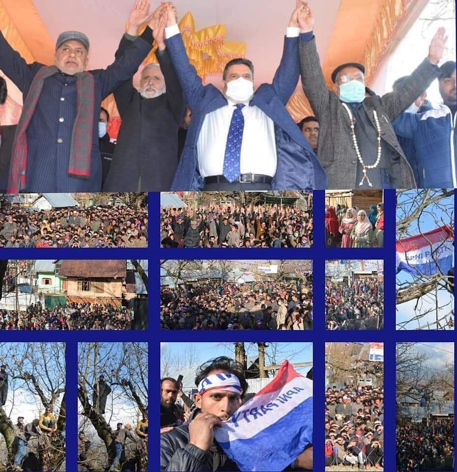 Bukhari was addressing the Party’s campaign convention for DDC elections at Gund Mashar-Lolab in district Kupwara. He was flanked by Apni Party Senior Vice President Ghulam Hassan Mir, District President Kupwara Raja Manzoor, Party’s contesting candidate from Rajwar Abdul Rashid Bhat, Party’s contesting candidate from Sogam Block Abdul Rahim Wani, party leaders advocate Javed Mir and Bilal Arif.