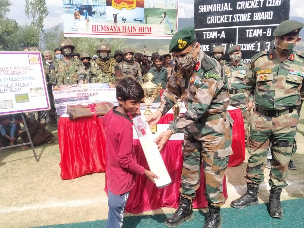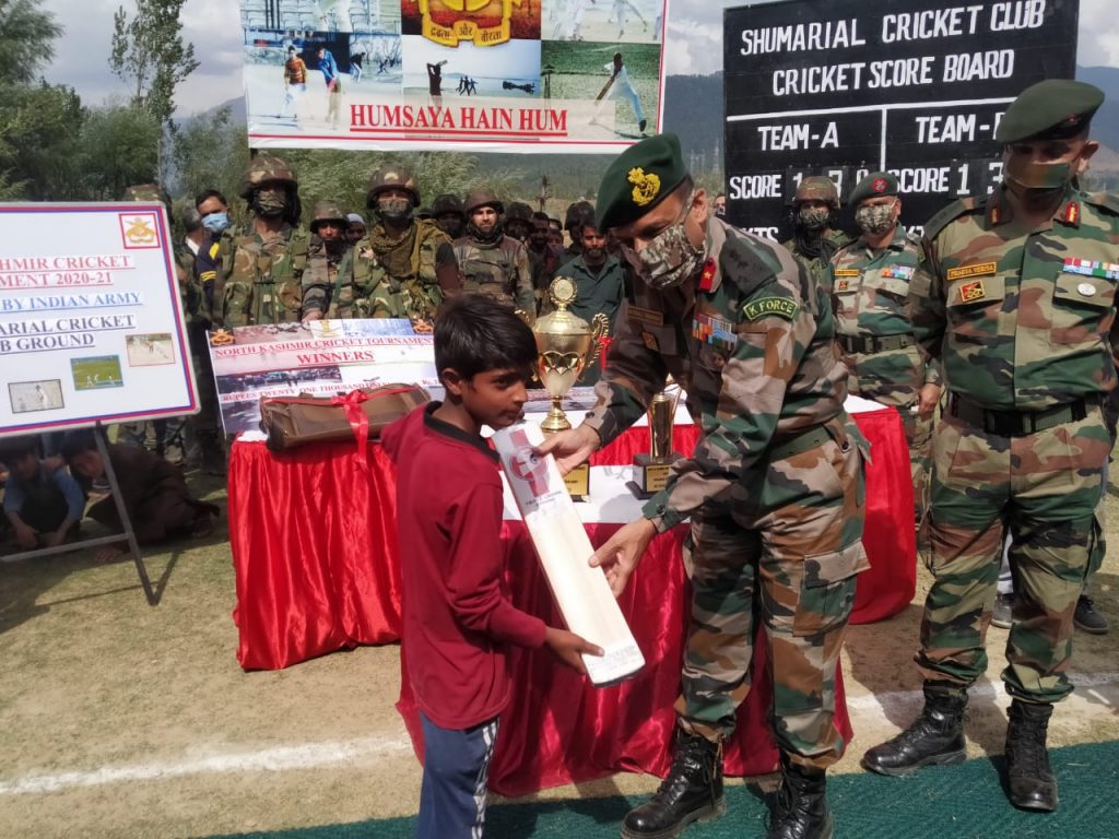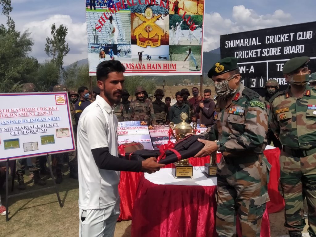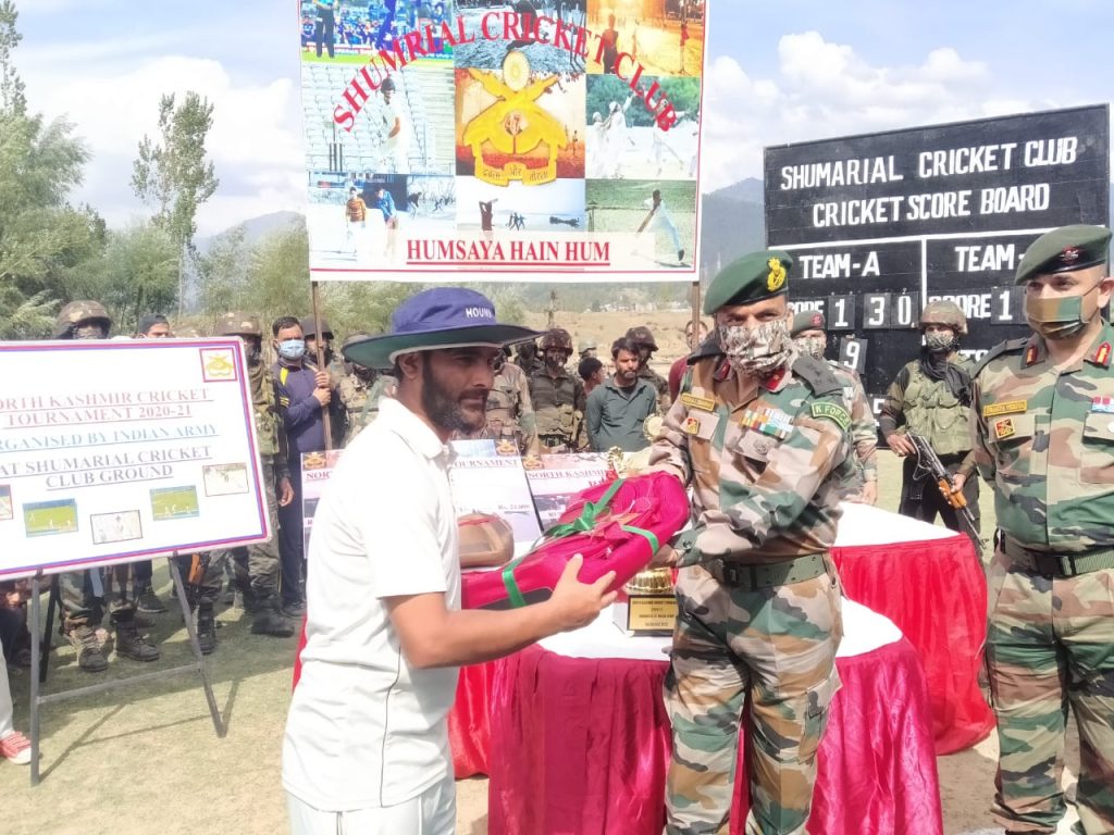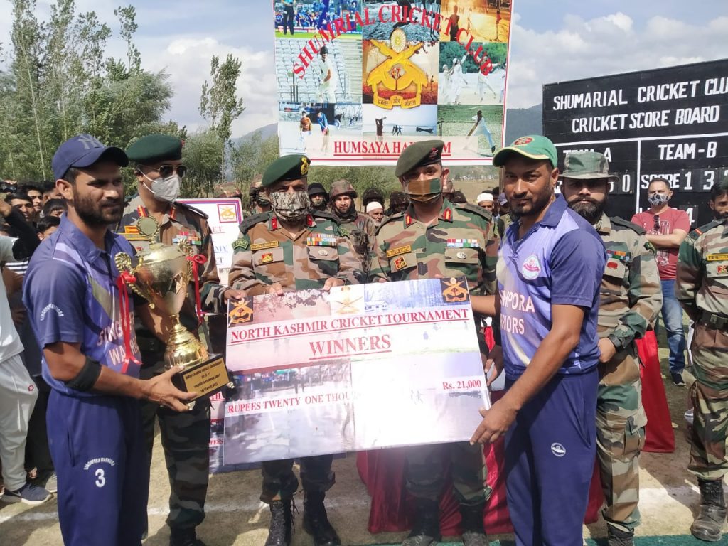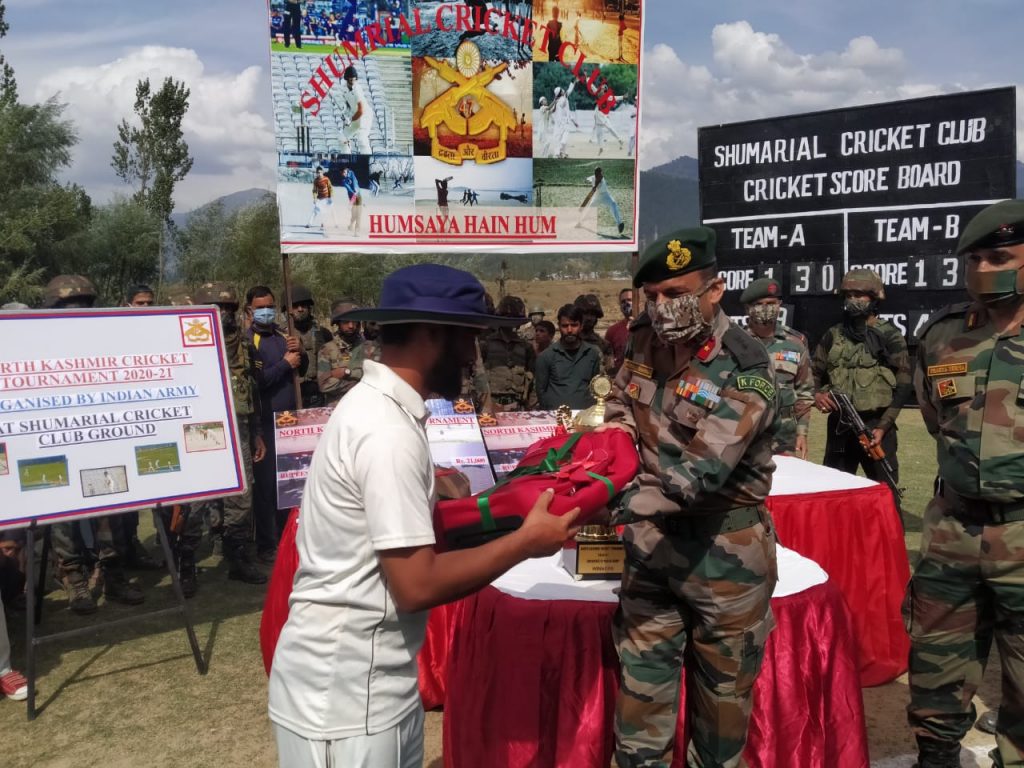 Kupwara, September 26:In an initiative to improve ties with civil population and give them a chance to showcase their talent Chak-Kigam Camp under aegis of Charkut Garrison had started North Kashmir Cricket Tournament at Shumrial on 14 sep 20. Being played on the lines of T20 format, a total of 16 teams from all over North Kashmir participated to corner the glory of lifting the trophy.