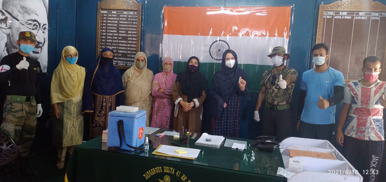 428 Field Hospital and Humdard-E-Kupwara Battalion in collaboration with Zilla Sainik Welfare Office, Kupwara worked on the data of veterans for over a week and reached out to them telephonically to spread awareness and invited them for vaccination today. Almost 50 veterans turned out for this drive. Alongwith with Vaccination, a medical camp was also conducted for them with distribution of free medicines . Cases of major ailments were noted for consultancy in future by the doctors. Similar drive was carried out in Trehgam for the veterans on 10 June 2021 wherein 20 veterans were vaccinated.