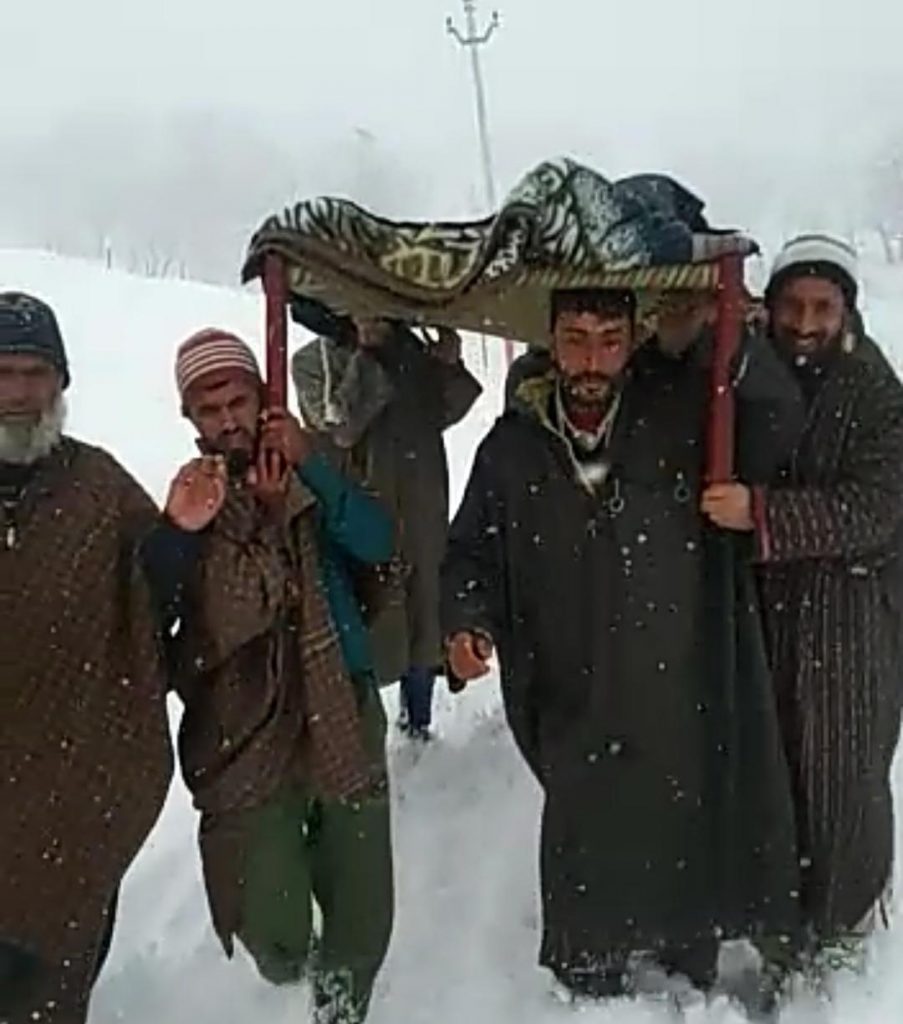 Baramulla, Jan 03 (KNO): As the heavy snowfall blocked many roads across Kashmir, the people in Takiya Yosif Shah Chandoosa area in north Kashmir’s Baramulla district had to carry a patient on a make—shift stretcher and cover almost 15 kilometers by foot to reach the hospital.
