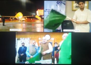 Srinagar, Oct 23: Union Home Minister Amit Shah flagged off the inaugural Srinagar-Sharjah flight from the Sheikh Ul-Alam international airport...