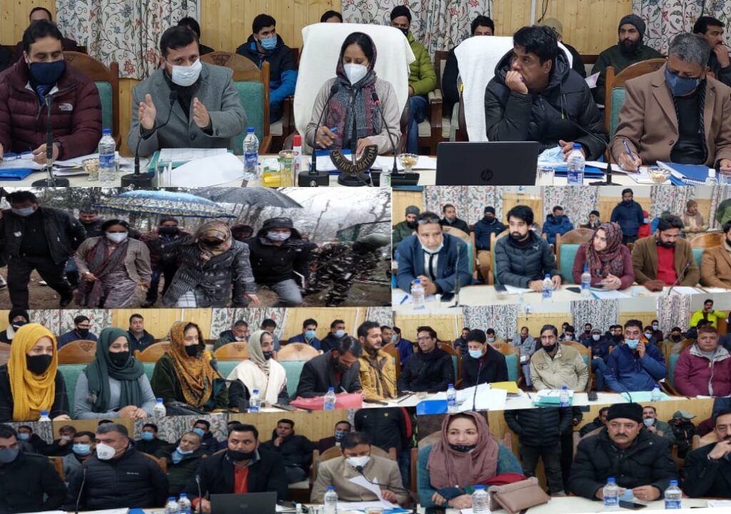 KUPWARA, FEBRUARY 22: Commissioner Secretary, Rural Development Department, Mandeep Kour today visited border Kupwara district and convened a high level joint meeting of officers and PRIs to review the progress of ongoing developmental works under District CAPEX Budget 2021-22.