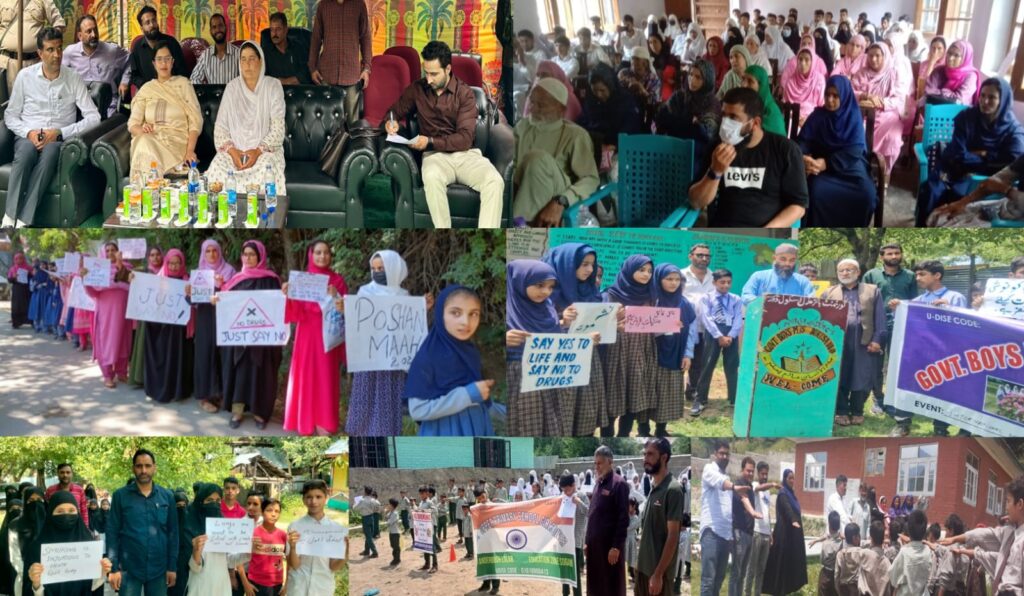 AWARENESS PROGRAMMES UNDER NMBA HELD ACROSS KUPWARA DISTRICT: Meanwhile on the directions of the Deputy Commissioner Kupwara, the Education Department,Kupwara; Social welfare department, RDD and Health department organized various awareness programmes, events, rallies, gram sabhas in various educational institutions and Panchayats involving students, teachers, Panchayat secretaries, PRIs, Anganwadi workers, Asha workers under Nasha Mukt Bharat in order to create awareness among people about the harmful effects of drug menace and its trafficking.