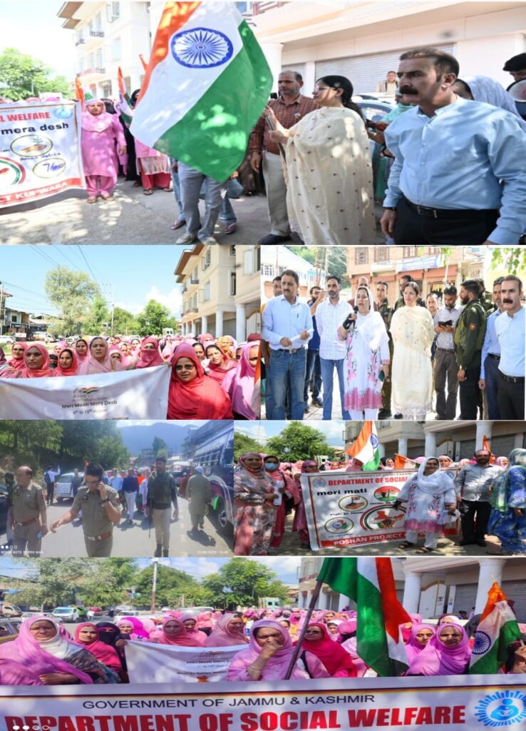 Kupwara, Aug 12: As part of ‘Azadi Ka Amrit Mohatsav’ and under ‘Meri Maati, Mera Desh’ campaign, a massive Tringa Rally was today organised at Kupwara by ICDS workers.