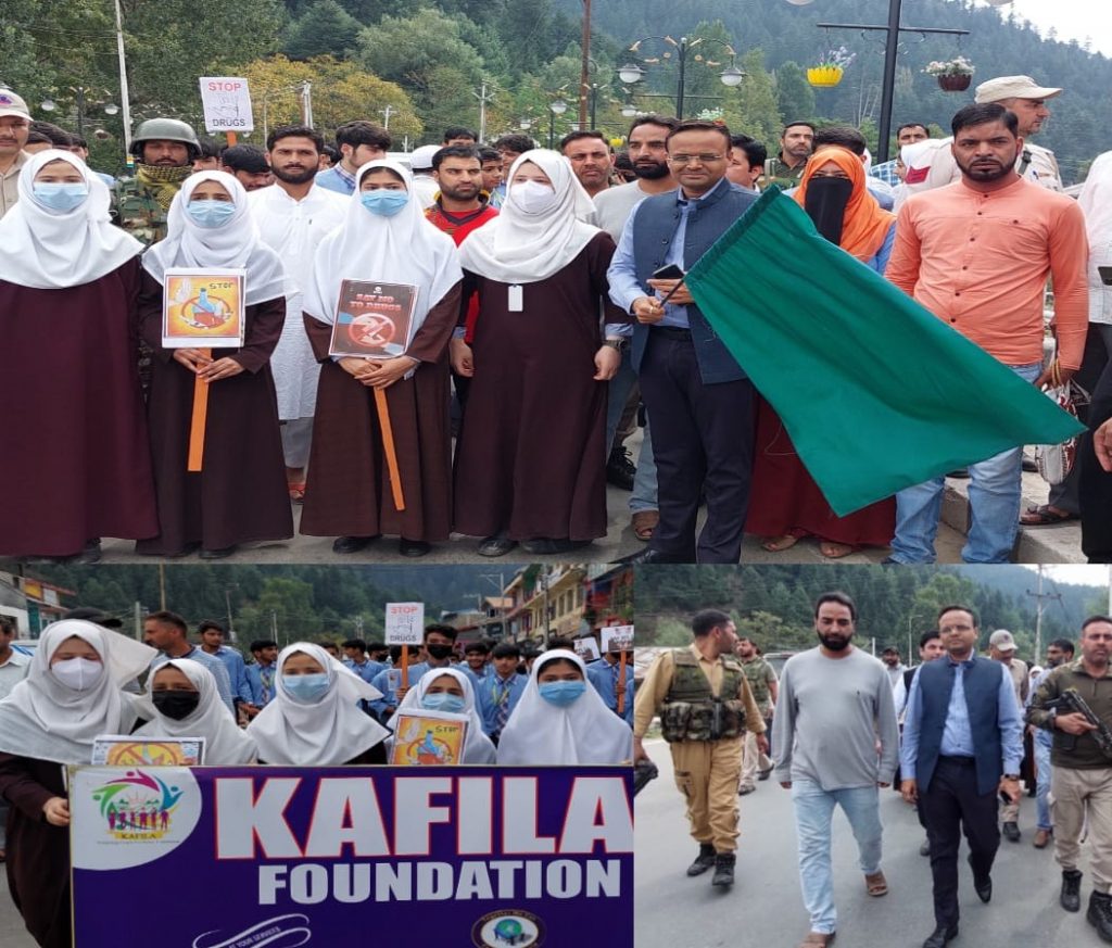 KUPWARA, OCTOBER 1: Deputy Commissioner Kupwara, Doifode Sagar Dattatray today flagged off a Nasha Mukt awareness rally, here in which a large number of school children participated. The rally was organized by Kafila Foundation, an NGO in collaboration with District Administration Kupwara.