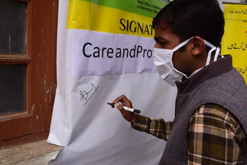 The aim of the signature campaign is to insure awareness about Child rights, care and protection.