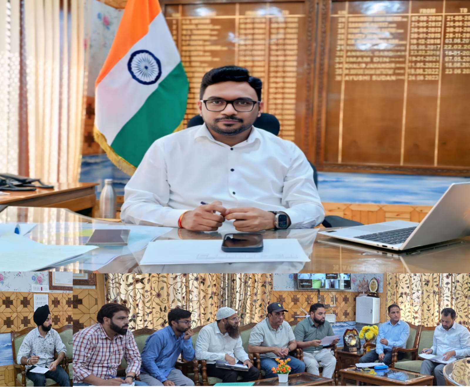 The works reviewed pertained to construction of footpaths, development of town hall building, construction of footbridges at Darzipora and Malik Mohallah, fencing of Shelter Home and Marriage Hall,Illumination works and beautification measures for the town.