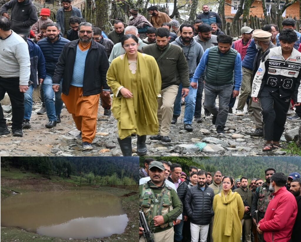 Kupwara, April 30: The Deputy Commissioner (DC) Kupwara, Ms. Ayushi Sudan on Tuesday visited flash flood hit Doban Kachama village of Kupwara district to take firsthand appraisal of the situation arisen after the breach in water reservoir, triggered by flash floods and take the on-site assessment of the flood prevention measures.