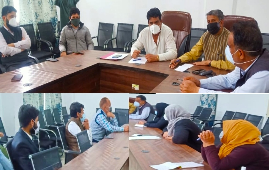 KUPWARA, MAY 05: Chairman, District Development Council (DDC), Kupwara, Irfan Sultan Panditpuri today chaired a meeting of Council members and reviewed the measures to be taken up by the Council for mitigating the ongoing Covid-19 crisis. Vice Chairman, DDC, Kupwara Haji Farooq Ahmad Mir was also present in the meeting.