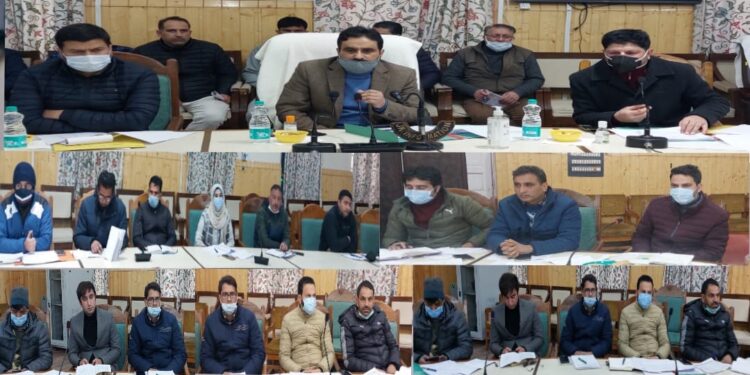 KUPWARA, FEBRUARY 15: Director, Rural Development Department (RDD) Kashmir, Tariq Ahmad Zargar today chaired a meeting of concerned officers to review the progress of developmental works under various schemes being implemented by RDD in Kupwara district. It was informed in the meeting that Rs.1222.30 lakh have been approved under Community Development (including BDC/DDC Office) for the year 2021-22 out of which Rs.364.54 lakh have been received and Rs.150.59 have been expended so far. Regarding physical achievement, it was informed that 250 works were approved in the current financial year out of which 210 were taken up and 88 works have been completed till date. It was also informed that under Rashtriya Gram Swaraj Abhiyan (RGSA) Kupwara, Rs.353.90 lakh have been approved out of which Rs.245.88 lakh were received and Rs.123.18 lakh have been expended. On the occasion, the Director RDD stressed upon the officers to gear up the pace of work and ensure completion of all ongoing works within the stipulated timeframe. Earlier, the Director took block wise review of the works going on in the various blocks of the district. ACD Kupwara, Mehraj-u-din Shah; ACP, BDOs, XEN REW, AEEs and other concerned attended the meeting.
