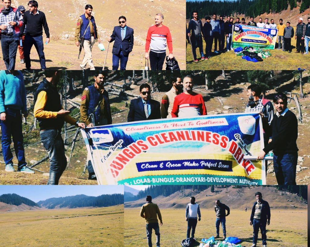 KUPWARA, OCTOBER 17: Additional Deputy Commissioner (ADC) Kupwara, Nazir Ahmad Lone today inaugurated cleanliness drive at tourist spot Bungus, here.