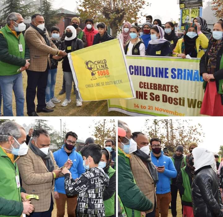 SRINAGAR, : On the occasion of Children’s Day or (Bal Diwas), being celebrated every year on 14th of November across the country, the Divisional Commissioner (Div Com) Kashmir, Pandurang K Pole today flagged off ‘Childline Se Dosti’ Week of Childline- an NGO, from the premises of the office.