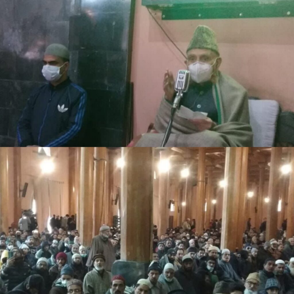 The Friday sermon was given by Imam Hai Syed Ahmed Naqshbandi as Mirwaiz Umar Farooq continued to remain under house detention.
