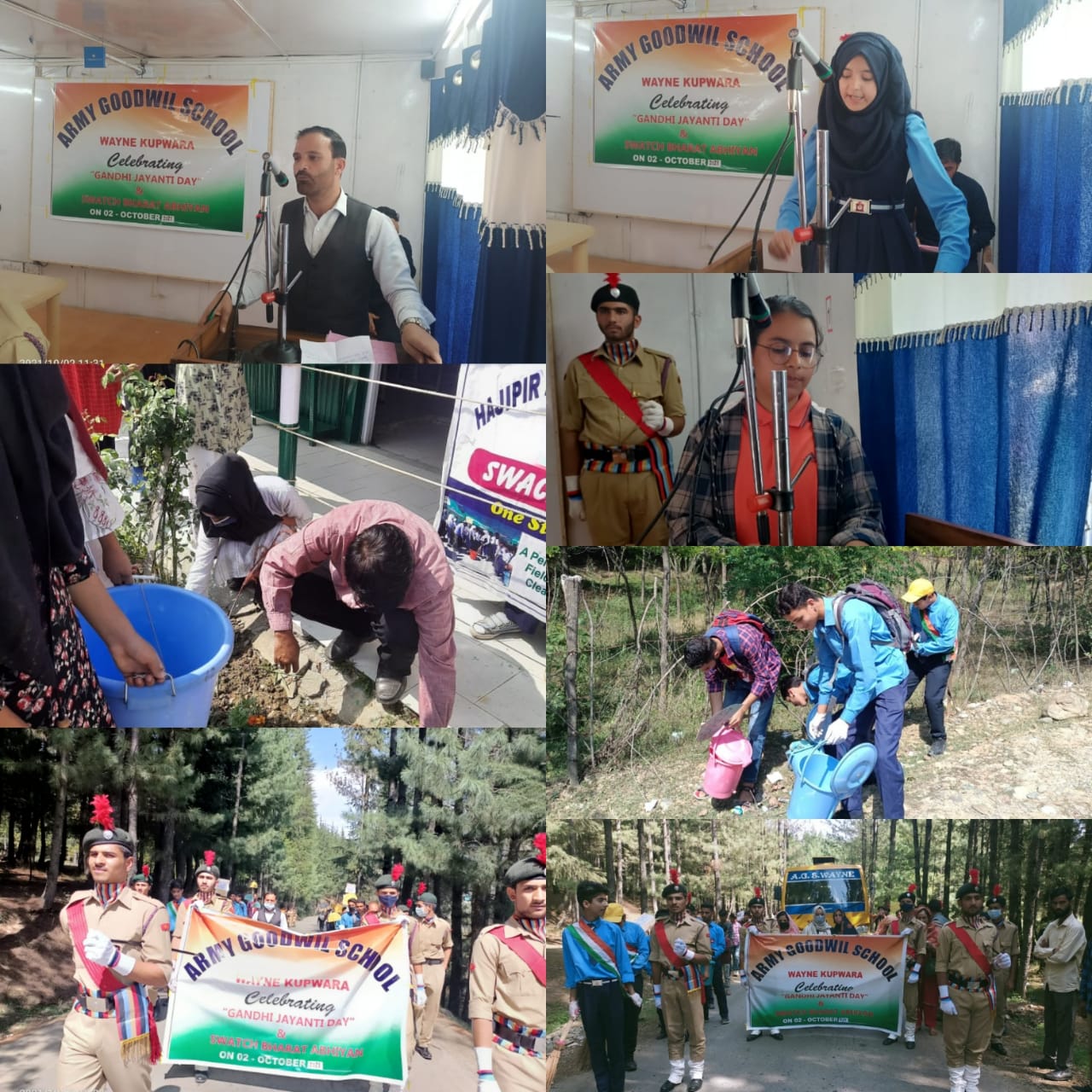 The programme commenced with Bapu’s favourite hymns, ‘Raghupati Raghav Raja Ram’ soulfully rendered by the students and Mr Tariq Ah Tariq, Principal AGS Wayne speaking his memorable words of inspiration- “Be the change that you wish to see in the world’’ followed by speech on his historic life and principles. Mahatma said, “Sanitation is more important than independence” and considering the importance of hygiene, students pledged to keep their surroundings clean. In order to live up to Bapu’s ideology, students cleaned the schools and the surroundings with a slogan- “God gave us green, let us keep it clean”. Whenever we think of Bapu, two words come to our mind – truth and non-violence. As Bapu was a staunch believer of these ideals and believed in honesty as the virtue of being truthful to self and society, students carried out a Peace March to Gulgam raising slogans on Non-Violence and Terror Free Kashmir which was very well appreciated by the locals.