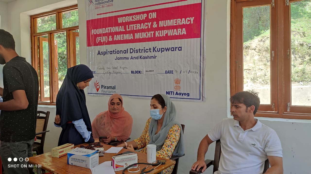 As part of the Aspirational District Collaborative (ADC) Piramal Foundation in collaboration with the Health and Education Department organised Anemia Screening Camp in GHS Rajpora Rajwar customised in line with National Health Mission’s (NHM) Anemia Mukt Bharat. The camp was organised with support from Girls High School Rajpora, Zonal coordinator Altaf Ahmad bhat of block Rajwar and doctors team of Block Zachaldara namely Dr. Aruj(MO RBSK) and Dr. Muneer(MLHP/CLO)Various departments such as Health & Family Welfare, Education, ICDS, Panchayati Raj are converging in this campaign.Close to 200 students of school received free medical check-up and screening. The main target population in the camp were adolescent girls in the age group of 10-19. About 24 people tested at the camp were found Anemic. Piramal Foundation Team Kupwara shared their views by saying that we will bring all the departments together under ADC and work to improve our health and nutrition, and education indicators. This health camp was the beginning of the series of health camps that are going to be conducted all over the kupwara district.It is pertinent to mention that Piramal Foundation is the implementing partner of NITI AYOG in ADC program which currently runs in 112 Aspirational district’s.