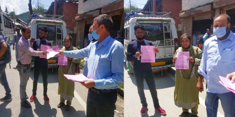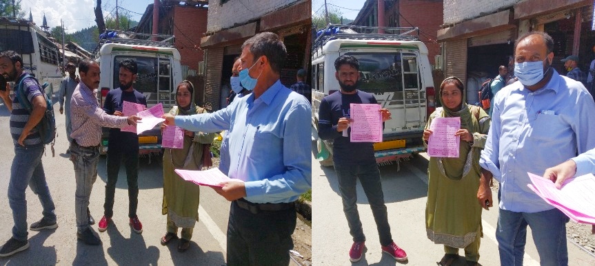 KUPWARA, AUGUST 10: District Information Centre Kupwara today organised a pamphlet distribution campaign at Trehgam tehsil headquarter during which District Information Officer Kupwara, Mohammad Yousuf Mir and employees of the DIC distributed the pamphlets among the shopkeepers, commuters and pedestrians.