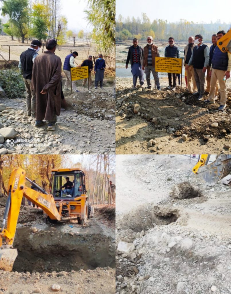 KUPWARA, NOVEMBER 04: The Geology and Mining Department Kupwara, today on third consecutive day continued its efforts to implement the ban on illegal extraction of minor minerals from the district. The District Mineral Officer (DMO), Kupwara, Mumtaz Ahmad Shah along with team of police and other concerned officers visted Nallah Mawer in Handwara sub division and disconnected all approach link roads leading to Nallah Mawer by digging deep trunchs to completely restrict the movement of JCBs, Tractors, Tippers and other means of transport.