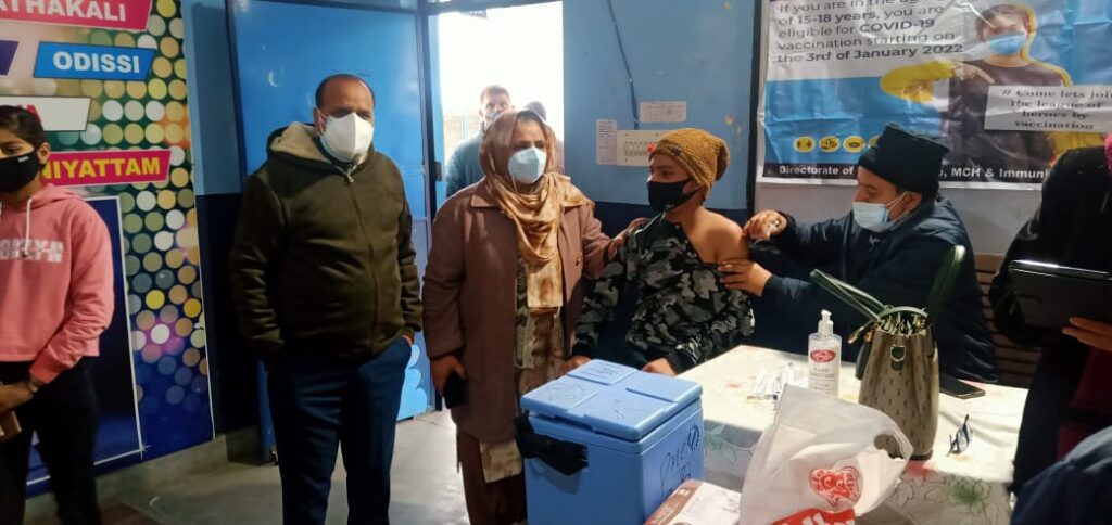 Jammu, 22 January, 2022. Jammu & Kashmir administration has achieved the target of 100% COVID vaccination in the 15-18 years age group for the first dose in the Ganderbal, Shopian, Anantnag and Poonch districts. This is a major step towards complete vaccination goal of the eligible people in the Union Territory. Health department is running a massive immunisation campaign across Jammu and Kashmir.
