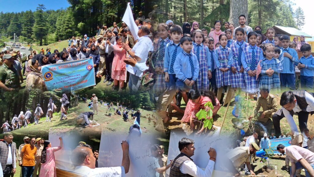 Kupwara : The Kamraj Forest Division Kupwara J&K Forest Department spearheaded an inspiring environmental initiative today, combining a plantation drive and a trekking event under the Systematic Voters’ Education and Electoral Participation (SVEEP) initiative. The event saw enthusiastic involvement from 50 girls from the Government Degree College for Women, Kupwara.