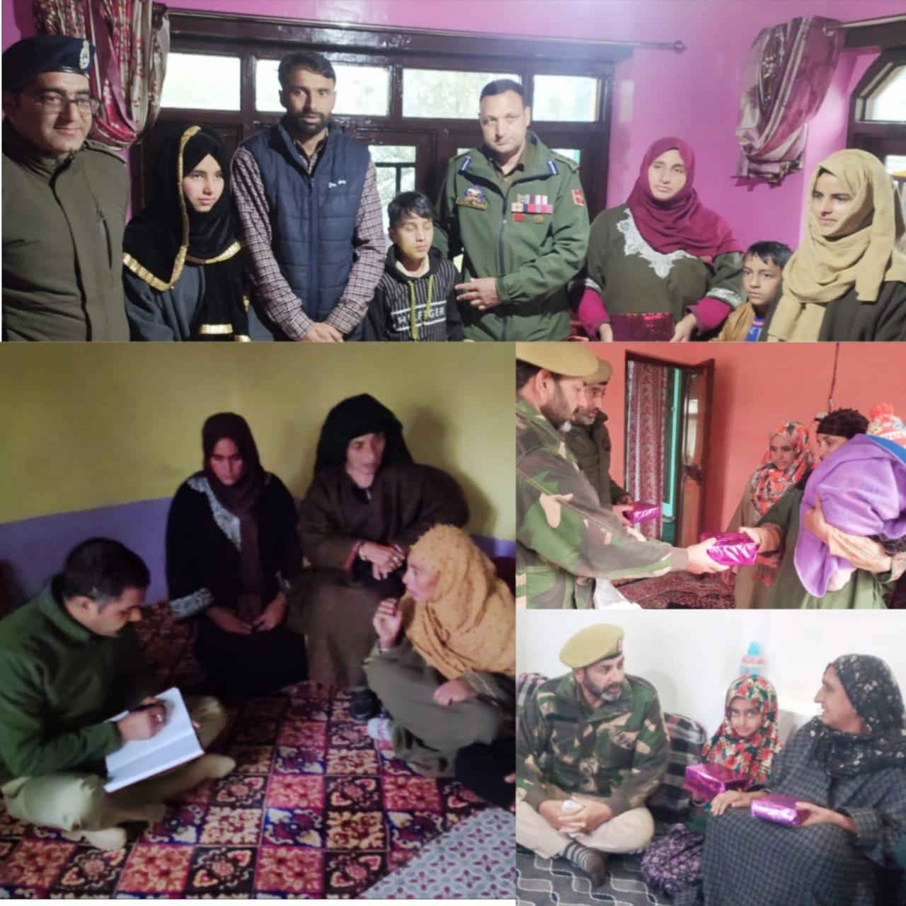 Led by SSP Kupwara Yougal Manhas, different teams of police officers of district Kupwara visited families of Police Martyrs of the district to take stock of the welfare measures and also to find out greiviences, if any. SSP Kupwara visited the family of police martyr Mohammad Yousuf Bajad at Marhama Trehgam who attained martyrdom in February this year in Baghat Srinagar.