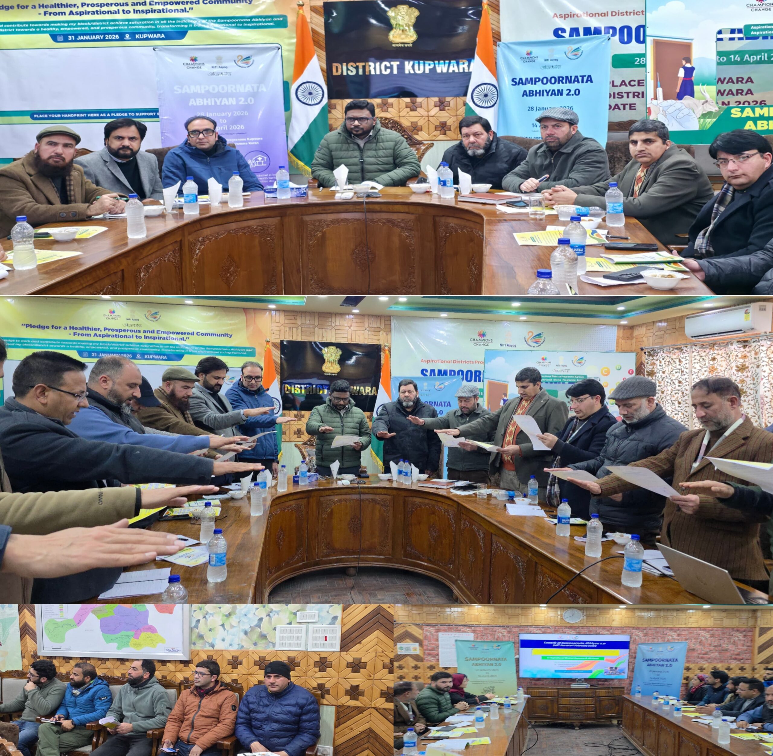 The District Administration Kupwara today launched Sampoornata Abhiyan 2.0 at a function held in the Meeting Hall of the District Commissioner’s Office Complex, Kupwara. The campaign was inaugurated by the District Development Commissioner (DDC) Kupwara, Shri Shrikant Suse, in the presence of senior district officers including ADDC Kupwara, Mufti Fareed u Din; Programme Officer ICDS, Yaar Ali Khan; ACR Kupwara; CPO; ACD; CEO; DIO; CMO and other concerned officials.
