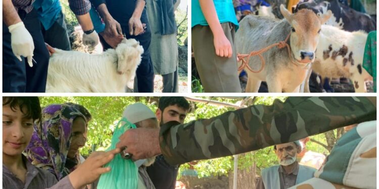 Kupwara, August 10: Kupwara Terriers, Indian Army organised a free veterinary camp at the remote village Manwan Bala, Awoora in North Kashmir’s Kupwara district to help local villagers living in this remote area.
