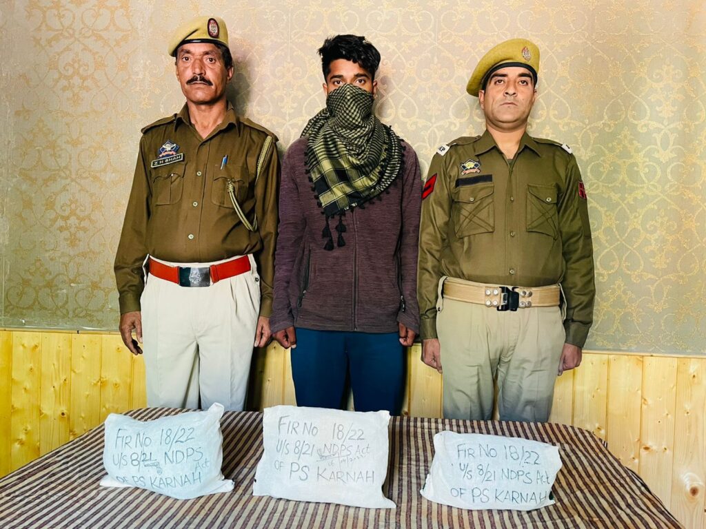 Kupwara Police today in a major success against the trans border smuggling module, has recovered three packets of narcotics weighing 2.250 kg of Brown Sugar and arrested a smuggler namely Rafaqat Khursheed son of Khursheed Ahmad , a resident of Gabdoori Nawagabra Karnah. The recovery was made on the disclosure of Rafaqat Khurshid when he was picked up on the basis of a reliable information that he has received a consignment of narcotics from across the LoC to be transported to other parts of the UT of Jammu and Kashmir and beyond. During the sustained questioning Rafaqat admitted to have received the narcotics consignment and told police that he has concealed it in a Forest area in Hajitra. Upon the disclosure and identification of the spot, the recovery was made in presence of the Executive Magistrate and the local people. Case FIR No. 18 /2022 u/s 8/21 NDPS stands registered and investigation taken was up. More arrests are expected in the case.