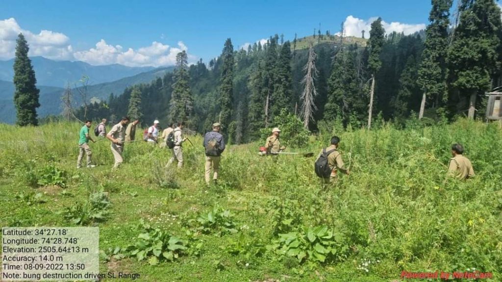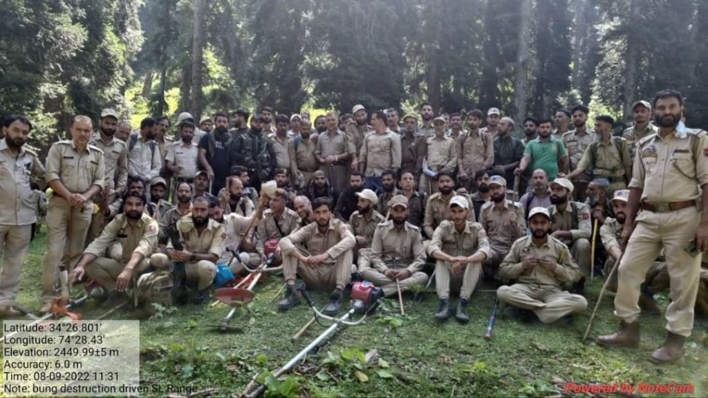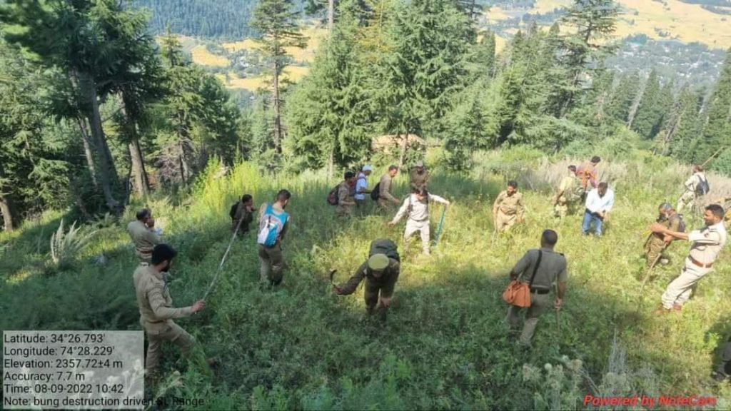 According to Divisional Forest Officer Kamraj Zahid Aslam, Anti Bhung drive was organised by Kamraj Forest Division Kupwara at three locations i.e.Trimokhan Top, Jabbdiyan and Bumus in collaboration with Anti Narcotics wing J&K Srinagar, J&K Police Contingent deployed by SDPO Sogam ,Excise Deptt, FPF K06 and K 08 and Revenue officials.