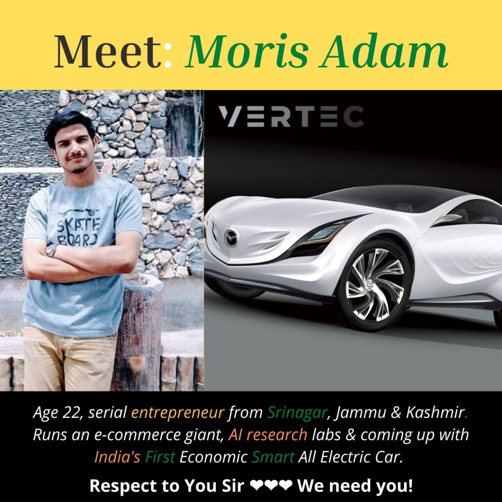 Hailing from Srinagar, Jammu & Kashmir; Moris has proved himself to a million youth that despite the lack of good internet facilities, problems caused by the COVID-19 pandemic and other issues, there is nothing that can stop you from succeeding in life. He has become an inspiration for the youth of the valley who want to become entrepreneurs and be successful in life.