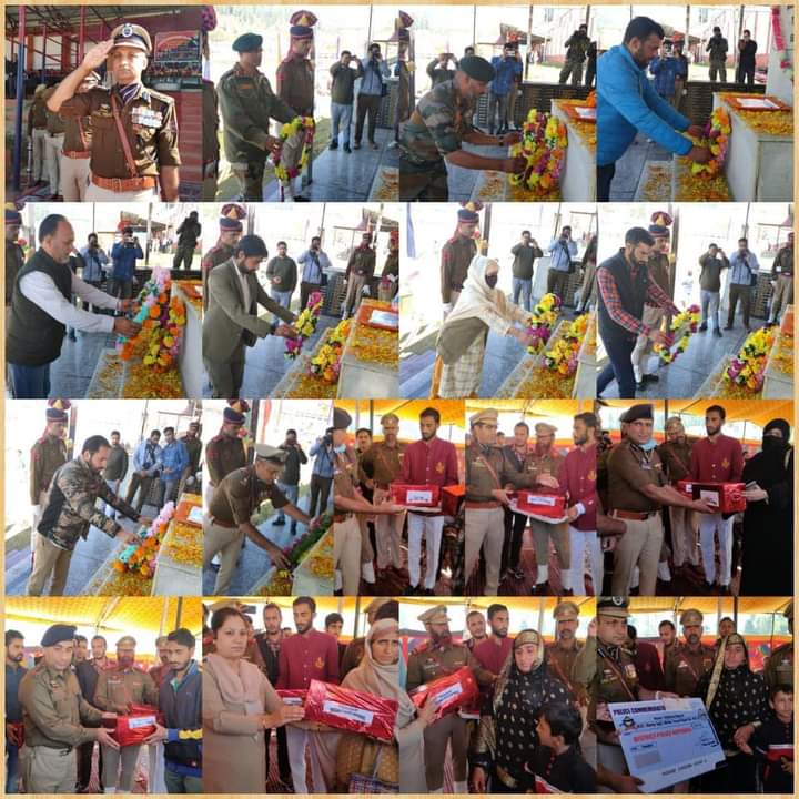 Police Commemoration Day was observed at District Police Lines Kupwara with all respect and reverence for those who sacrificed their lives in the line of duty. A grand function by all ranks and files of District Police Kupwara besides public representatives and families of martyrs participated in paying tributes to the martyrs . All the participants paid rich tributes to martyrs and lauded their supreme sacrifice while discharging their duties and upholding the democratic credentials of our country.