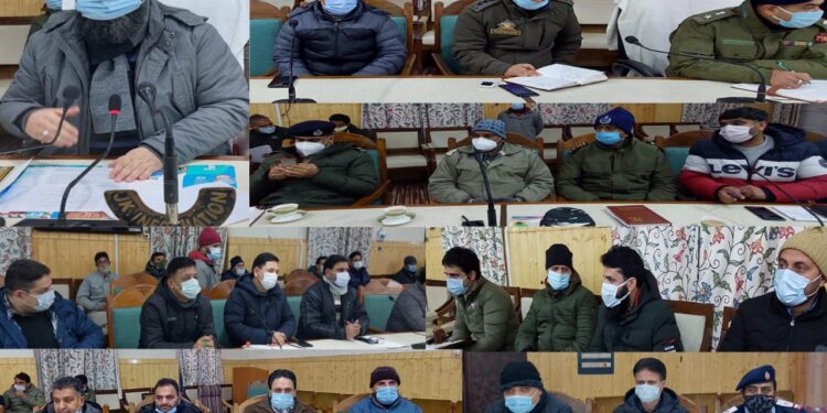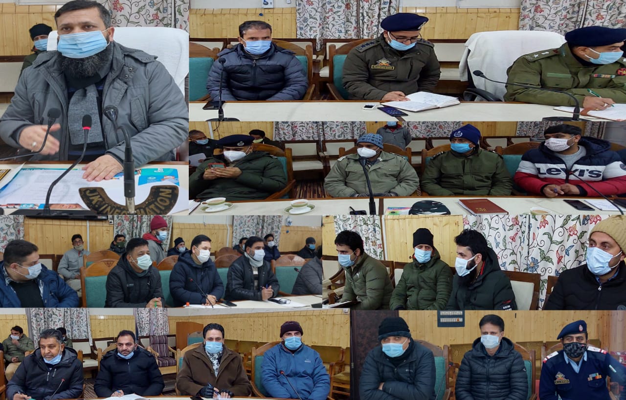 KUPWARA, JANUARY 20: In order to ensure proper arrangements for ensuing Republic Day (RD) celebration in district Kupwara, the Deputy Commissioner (DC), Imam Din, today convened a meeting of all concerned officers, here and finalized the arrangements. ASPs of Kupwara and Handwara, ACR, District and Sectoral Officers were present on the occasion, besides senior officers of BSF, CRPF and Police. Speaking on the occasion, the DC stressed upon the officers to ensure hassle free arrangements for smooth conduct of the National Event and instructed them to maintain proper coordination and follow timeline for ensuring arrangements well in advance. He also directed them to follow protocol of COVID-19 strictly and ensure use of masks in the function. The DC also stressed the need for maintaining protocol in seating arrangement and also issued directions to the police department for taking proper protocol of National Flag. Earlier, the meeting was briefed about the programme and responsibilities of each officer and was informed that the main function of the Republic Day will be held at District Police Lines (DPL) Kupwara, where National Flag will be hoisted and the VIP will take salute on the March Past comprising the contingents of JKP, JKAP, CRPF, IRP, BSF, CRPF, FPP and Home Guard. It was also informed that the function will start with Shahnai Vadan at 8.50 AM, whileas National Flag will be hoisted at 9.30 AM. Entrusting the responsibilities for smooth conduct of the event, the DC asked R&B Department, Mechanical Engineering and Municipality Kupwara to ensure proper sanitation and cleanliness of the DPL ground. They were also directed to keep manpower available in case of snowfall on both days of rehearsal and main function. Assistant Commissioner Development (ACD) was directed to make seating arrangement of the function. While Power Development & PHE departments were directed to ensure uninterrupted power and water supply. CMO Kupwara was ordered to deploy doctors & paramedics along with Ambulance and first aid. The police department was entrusted with security arrangements and the Information Department was asked to facilitate proper Public Addressing System and media coverage of the event. Police Department was asked to provide stand -by PAS while as SRTC was asked to make sufficient arrangements of vehicles. Other arrangements including refreshment, deployment of magistrates, arrangement of cultural programmes, barricading, facility of commentators and availability of fire-tenders were also reviewed. It was also given out in the meeting that Republic Day function will also be held at Handwara and Karnah subdivisions, in blocks, besides, in High and Higher Secondary schools and in all Government offices. Deputy Commissioner also directed Officers to ensure their presence including staff in the Republic Day functions.