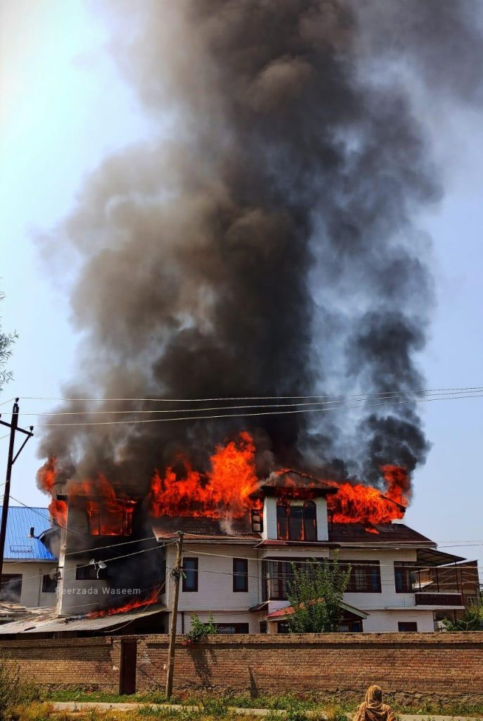 Officials told the news agency—Kashmir News Observer (KNO) that a massive fire broke out in the double storey residential house of Mushtaq Ahmad Pandith (Advocate), son of Late Habib Ullah Pandith this morning.