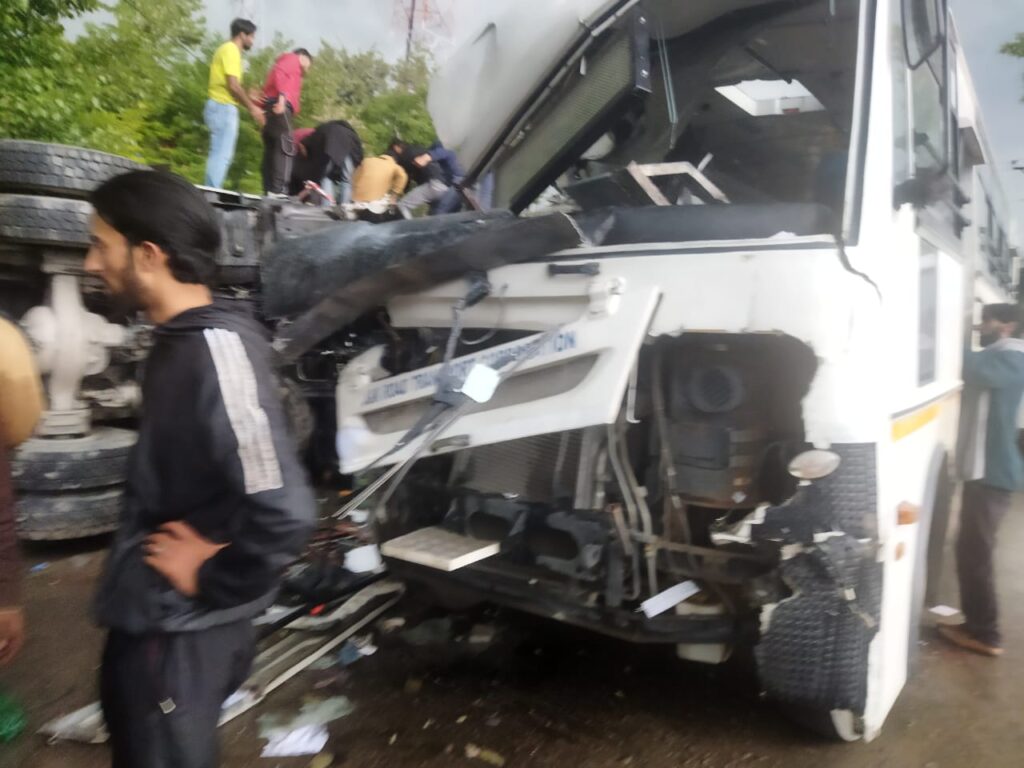 Officials told the news agency— that a SRTC bus carrying Sarpanchs was en-route to Baramulla. The driver, however, lost his control over the vehicle and the bus turned turtle in Pattan area.