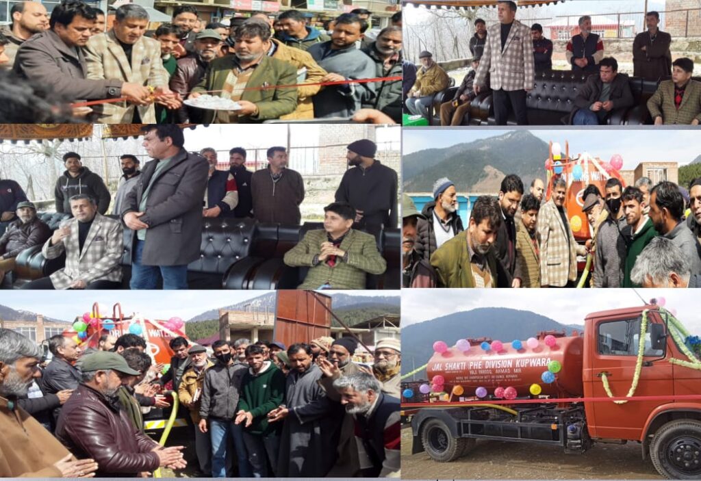 KUPWARA, March 09: Chairman, District Development Council (DDC)Kupwara ,Irfan Sultan Panditpori and Vice Chairman DDC Kupwara, Haji Farooq Ahmad Mir today said that Government is taking concerted efforts to provide portal drinking water to every village and habitation of the district.They said 12 water supply schemes are coming up in the Lolab Sub division only which will augment the water supply facilities in a timely manner. The dignitaries were speaking at a function held at wavroora today. On the occasion one water Tanker, costing Rs.16 lakh have been endowed to public. The water Tanker was purchased from the constituency development fund of Vice Chairman, Haji Farooq Ahmad Mir. The concerned officers and engineers were present at the occasion. In his address Haji Farooq said that he is himself aware of the developmental requirements and needs of the people and he is committed to deliver his best for the upliftment of the people.
