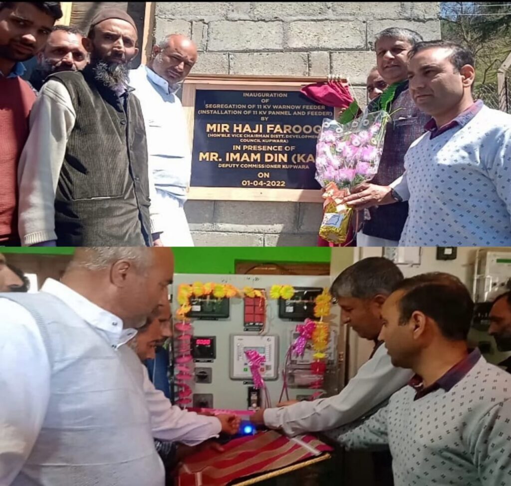 KUPWARA, APRIL 1: Vice Chairman, District Development Council (VC-DDC) Kupwara, Haji Farooq Ahmad Mir today inaugurated segregation of 11Kv Warnow Feeder at Receiving Station (RS) Krusan in presence of SDM Lolab, Aijaz Ahmad Bhat and concerned officers.