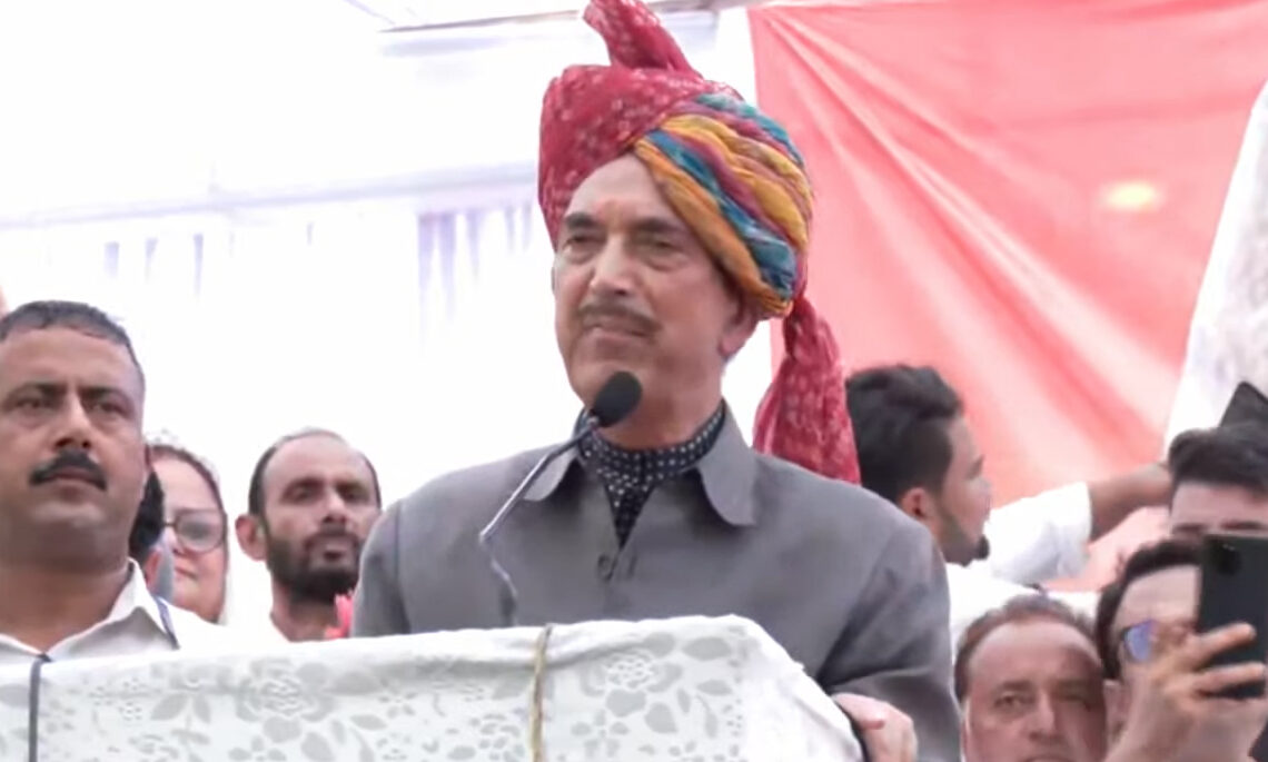 Azad reached the venue after a rousing reception by his supporters at Jammu airport and wore a Dogra turban to strike a chord with the Jammu—(KNO)