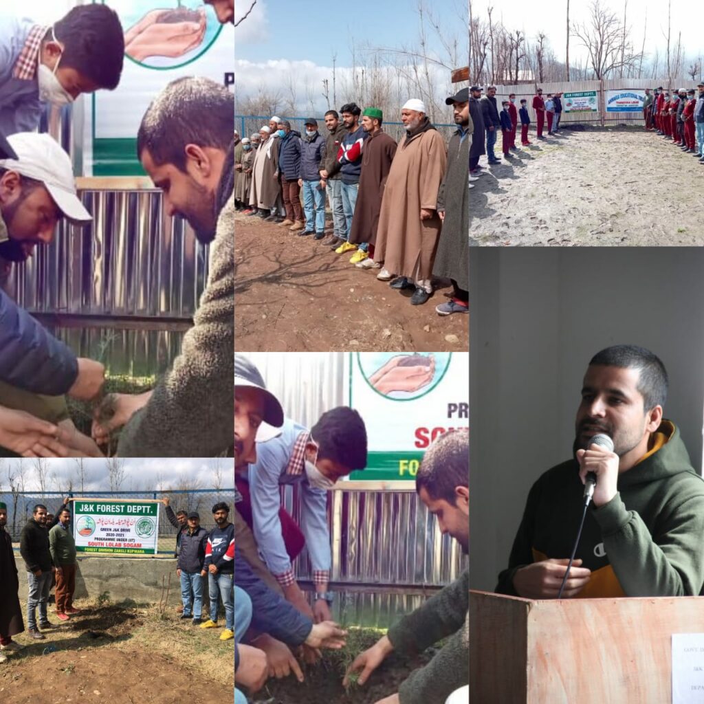 Srinagar, Mar 09: Youth Public Welfare forum (YPWF) -a ray of hope and Forest Department in collaboration with Anwaria Educational Trust thandoosa Lolab organized a plantation programme under “Green Lolab Initiative ” at Thandoosa Lolab here today.